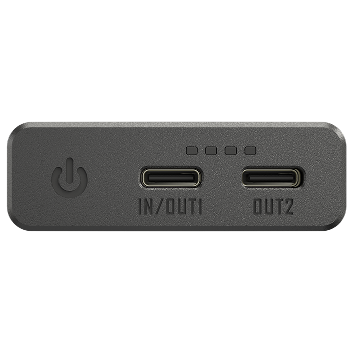 Batterie fabriquée en carbone. Entrée USB-C 30W / 5V-2A / 9V-3A / 12V - 2,5A. Sortie USB-C (30W) 5V-3A / 9V-3A / 12V-2,5A / 15V-2A / 10V-2,25A. Câble USB-C inclus. 4 indicateurs lumineux affichant le niveaux de charge restant.