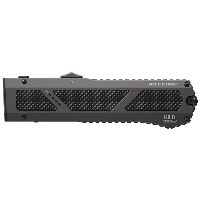 La EDC17 est une lampe de poche dotée d'une puissance de 1500 lumens et d'une portée de 230 mètres avec sa lumière blanche. Elle dispose aussi de deux autres sources lumineuses : une lumière UV à 1350mW et une fonction laser vert classe 1 <0,39mW. Elle est alimentée par une batterie Li-ion intégrée de 1500mAh, celle-ci offre jusqu'à 260 heures d'autonomie en mode ULTRALOW (1 lumen). Un design extra fin avec seulement 16mm d'épaisseur, 32mm de largeur et une longueur de 123mm, pour un poids total de 106g. Grâce à sa norme IPX7, elle peut être submergée jusqu'à 1 mètre de profondeur et sa résistance aux chocs est de 2 mètres. Pour être toujours plus pratique et polyvalente, la EDC17 se recharge en USB-C et se verrouille automatiquement lorsqu'elle est éteinte grâce à son bouton slide. Elle peut être utilisée pour un usage quotidien ou bien même lors de situations d'urgences ou de secours grâce à son embout brise-vitre détachable situé à l'arrière de la lampe.  Avec ses 3 sources lumineuses différentes, et ses 8 modes d'éclairage, elle saura s'adapter à chaque environnement et chaque situation.