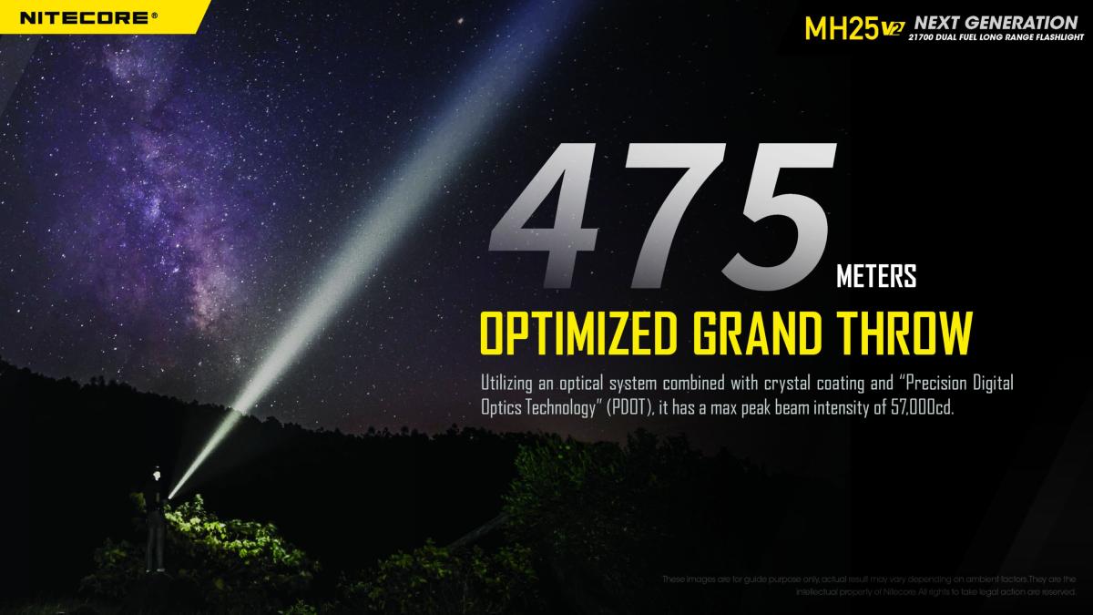 Mode Daily et Tactical, 4 niveaux de luminosité, 3 modes spéciaux (SOS, Stroboscope, Localisation) : 1300 lumens, 300 lumens, 50 lumens, 1 lumen. Lampe pouvant tenir à la verticale sur sa base. Livrée avec accu NL2150 5000mAh, câble USB-C, clip, dragonne, étui, joint torique de rechange, adaptateur pour CR123/18650.
