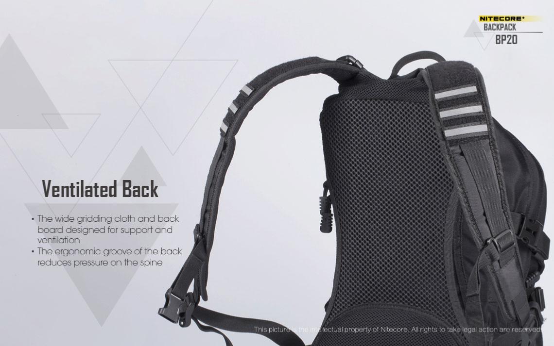 Volume 20L. Panneau ventilée et bande de soutien dans le dos. Toile Nylon militaire haute résistance, imperméable et léger. Nombreux rangements.