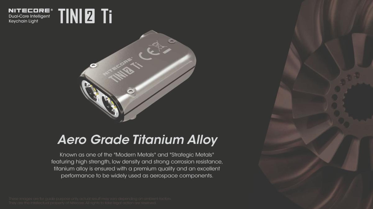 Lampe porte-clés Tini 2 TI - Version Titane - 500 Lm - Lg : 46,6mm - Dia-tête : 12,5mm